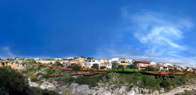 1b. La segunda zona de proyecto se trata de una antigua senda de salida del pueblo, de acceso casi peatonal, en la cresta del acantilado de les coves roges, por ENCIMA del rÃo, asomados a el.