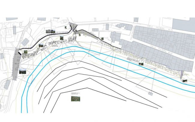 Proponemos un nuevo dibujo del pueblo. Un nuevo recorrido que cosa las situaciones urbanas con el rÃo, que permita reconocer un ámbito especial vinculado a este. Asà las dos zonas de actuación tratan de establecer este tipo de recorridos, tratando las dos zonas como un mismo continente, un artefacto urbano que recorre y que ayuda a recorrer los márgenes del rÃo, que lo equipa y activa de cara a su re-incorporación a la memoria colectiva y a la vida de Gata.