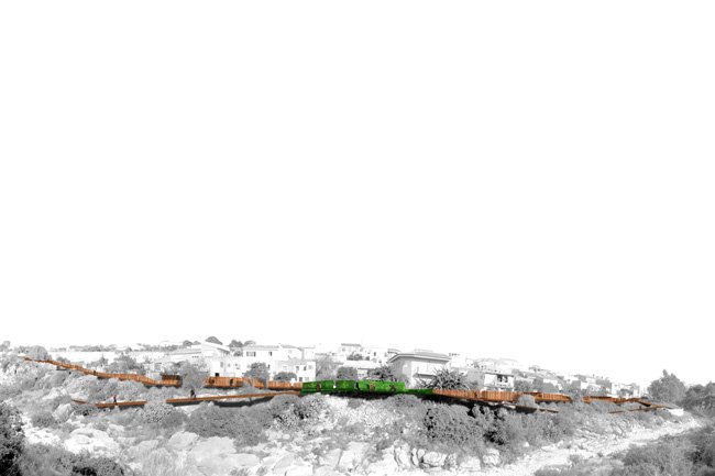 3a. La ladera es una zona hundida, no hay ningún lugar de interés donde mirar, UNA ZONA PARA SER OCUPADA. Al programa de paseo se añadirán nuevos programas importados, trazados para ocupar la ladera fuera del recorrido. El programa actual de la zona se reduce a lo que llaman el recorrido del colesterol. Proponemos hacerlo propio e intensificarlo, ampliarlo al uso de toda la población. Se tratarÃa de un AMPLIFICADOR Y MULTIPLICADOR de situaciones. Desviar la ruta actual junto a la carretera e introducirlo en la ladera, explicar las distancias, los esfuerzos, el juego, la cultura, la educación. En definitiva se trata de equipar la zona con la infraestructura necesaria para activar una multitud de nuevos acontecimientos que USEN la ladera. Una ladera técnica-natural equipada desde los caminos pero que ocupar la ladera con zonas acondicionadas (sombra, iluminación, pavimentos, etc,…)