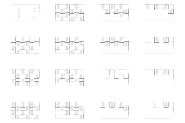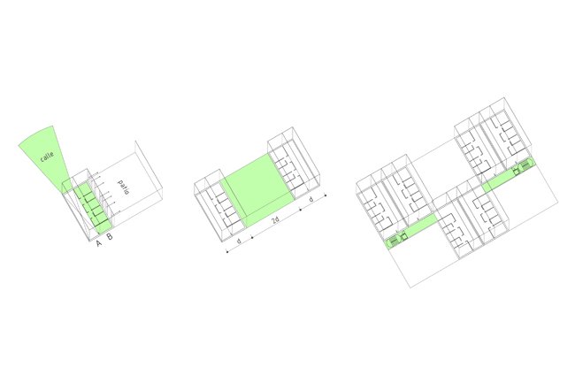 1.DOBLE: A+B; A= diáfano, grande, indeterminado, sujeto a la invención, profundo, abierto a la calle, servido; B= compartimentado, pequeño, equipado, convencional, abierto al verde interior, servidor.