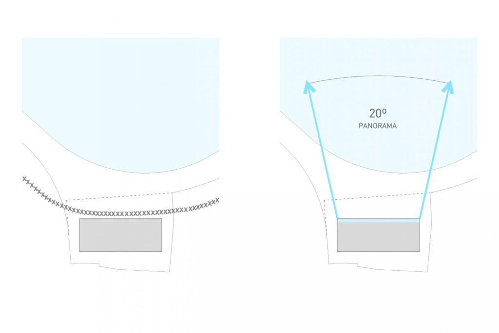 El proyecto propone no construir mas de la edificabilidad permitida repartiendola en dos actuaciones distintas. Por un lado, más allá del solar y estratégicamente ubicado, se dispone el nuevo equipamiento mirador público. Por otro, la construcción de un edificio comercial-terciario en el solar permite no solo completar la escena urbana sino que a la vez permitirá recuperar y reducir el impacto de la inversión total en estos tiempos difÃciles. Entre ambos edificios el paseo marÃtimo se ensancha apareciendo una espaciosa plaza pública soporte de la incipiente multiplicidad de situaciones propias a la intervención.