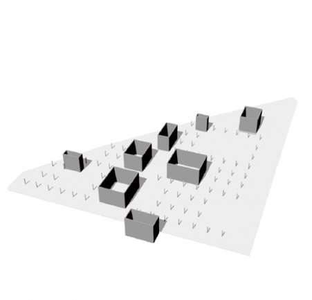 La nube se siembra de viviendas-patio. El patio como otra manera de entender la vida en el hogar, generando un horizonte interior protegido en un lugar donde no hay nada que mirar alrededor. Las viviendas se parcelan y funcionan como el barbecho. Cada vivienda esta diseñada para que sus distintas partes puedan rotar como lo hace este sistema de cultivo. Incluso la estructura de este nivel intermedio esta pensada para que un propietario pueda dividir su casa o ir incorporando partes de sus vecinos. Las torres funcionan igual en planta y sección. Una vivienda, una oficina, una situación por planta. Una vivienda con cuatro fachadas. Se diseña para que se produzca la misma situación en su interior. La posición del núcleo central con respecto al perímetro variable define la colocación de los usos de cada planta. En este caso la variación será vertical.