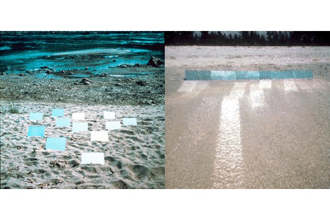 Intentamos abandonar el sentimiento nostálgico de mimesis como valor fundamental de esta situación. Robert Smithson en su instalación «Mirror Displacements» utiliza espejos que reflejan y refractan los alrededores, desplazando la solidez del paisaje. Genera, lo que el denomina, «nonsites» que vienen a ser fragmentos tomados de un paisaje y encerrados en un marco rompiendo la polaridad interior-exterior al enfrentar dos imágenes simultáneamente.
