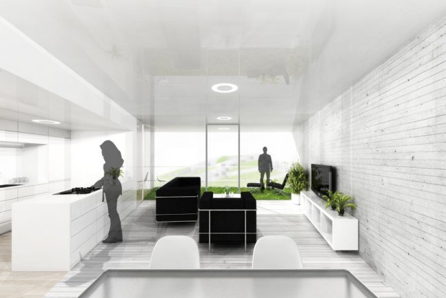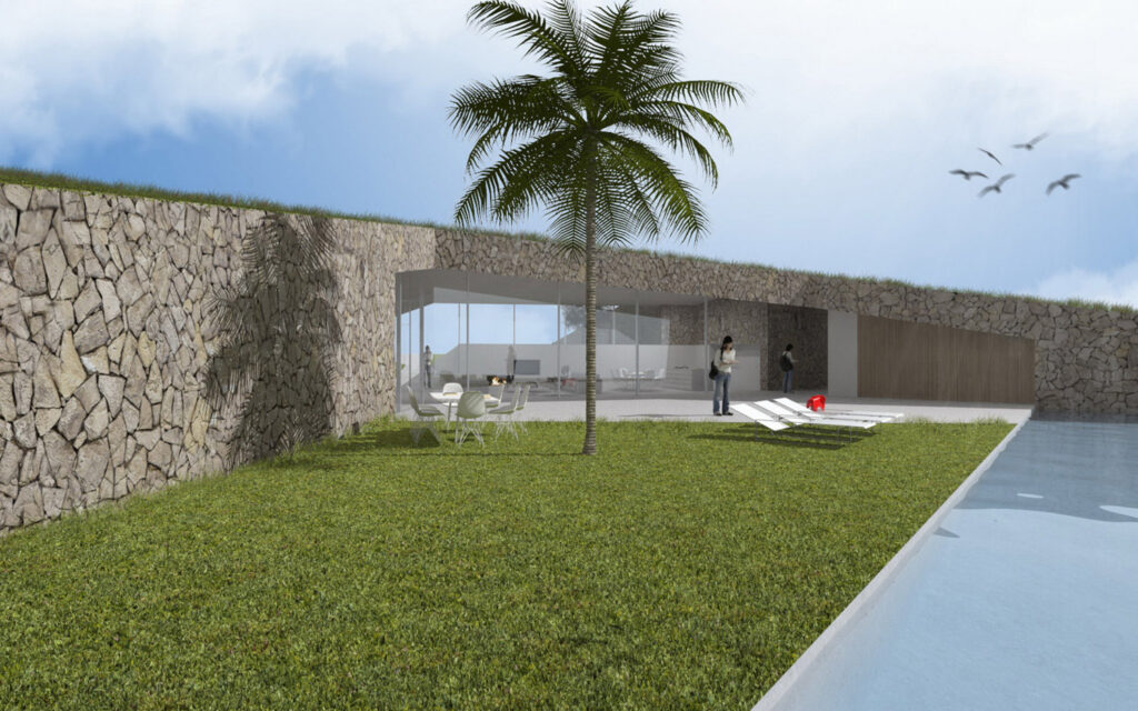 Vivienda enterrada que busca la vistas hacia el mar, genera una topografía y se protege de los vecinos maximizando las