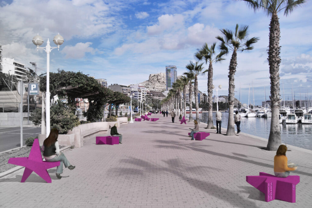 Cualquier ocasión es una oportunidad para construir ciudad. Proponemos una intervención con un fuerte compromiso social, mental y medioambiental. Queremos sembrar el paseo marítimo de estrellas y con ello construir un nuevo paisaje urbano. Lo hacemos a través de la incorporación de una nueva pieza de mobiliario urbano, con 3 características principales: