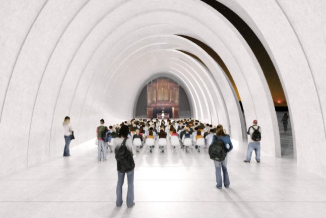 El proyecto establece una amplia reflexión sobre los espacios en los que se suelen albergar los órganos (las catedrales). Busca en ellos sus caracteres principales para, actualizados a la tecnología contemporánea, hacerlos propios. No se trata pues de mimetizar una catedral sino de entender su esencia para con ella construir un nuevo espacio con identidad propia.