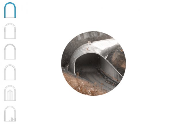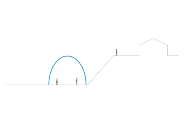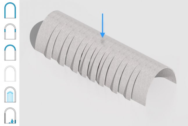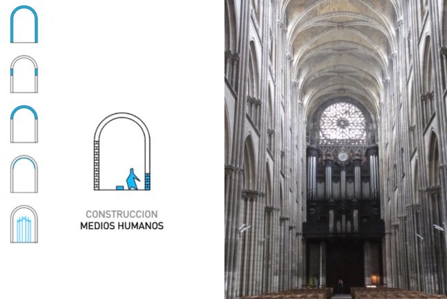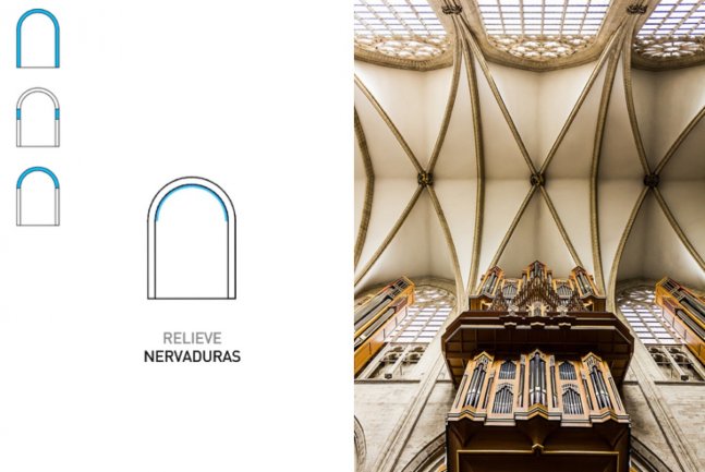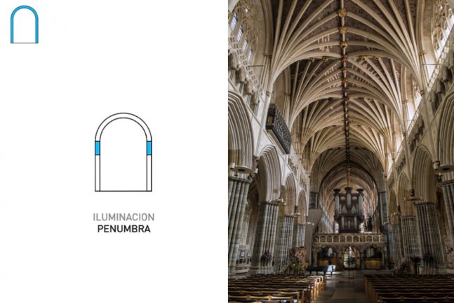 La bóveda se adapta al terreno y a las condiciones de programa mediante la modificación de su sección. Igualmente consigue amplificar su iluminación mediante el desgaje selectivo de algunas dovelas.